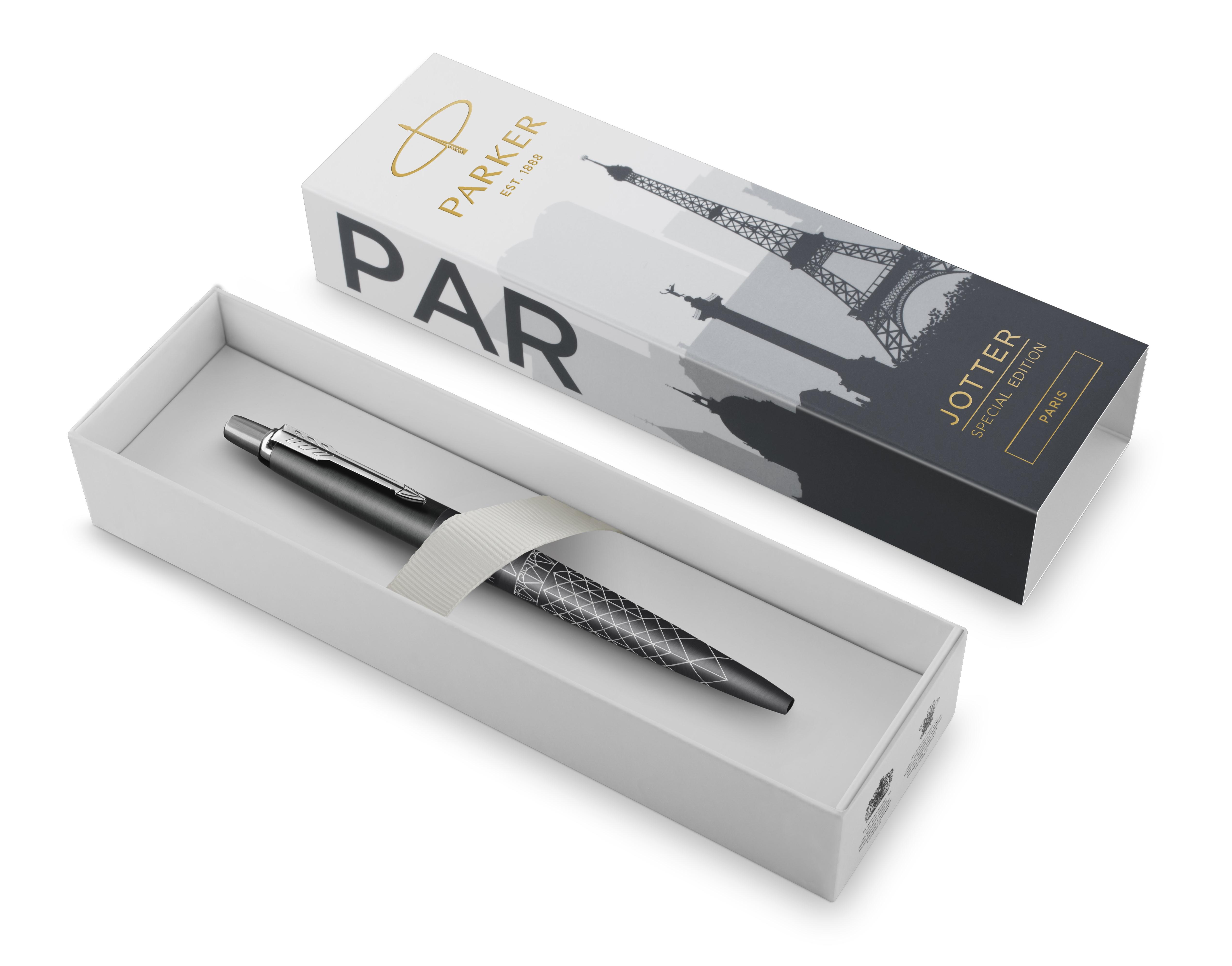 Ручка шариковая Parker Jotter Paris Grey CT от официального дилера Parker в Братске. Вы можете дополнительно заказать гравировку, которая подчеркнет Вашу оригинальность и придаст памятность статусному подарку. Все ручки Паркер поставляются в фирменном футляре.